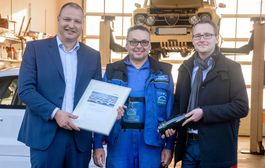 Am 8. Dezember besuchten DEKRA und Krafthand Medien Herbert Kugelmann aus Mickhausen bei Augsburg. Der Kfz-Meister ist der 1000. Teilnehmer einer Krafthand-Dekra-Profischulung.