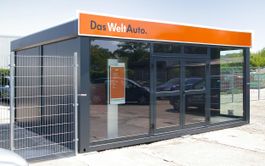Die günstige Alternative zu Festbauten. Autohaus Heise entscheidet sich erneut für Hacobau GmbH. Die preiswerten, modularen Verkaufspavillons oder Verkaufscontainer wurden in zwei verschiedenen Standardgrößen entwickelt, die modular auch zu beliebig größeren Einheiten verbunde