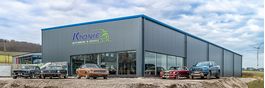 Ausstellungshallen und Werkstatthallen günstig bauen als individualisierte Fertighalle für KfZ - Betriebe.